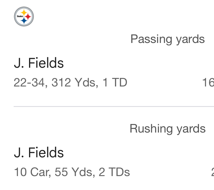 I’m sure the George Pickens fumble at the 5 yard line was Fields’ fault.