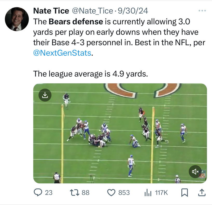 Bears rank in top 5 in a lot of categories. Top 2 in some. Defensively, of course.