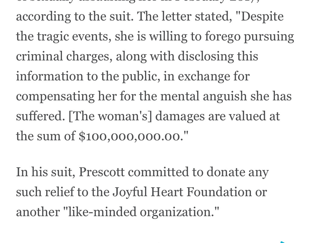 Dak is by every account a great person, and everyone says so. He’s beloved by his teammates, coaches, and city. If a guy has one accusation, I might be willing to let the process play out. If he had multiple accusers, I’d probably be more likely to have a firm take.