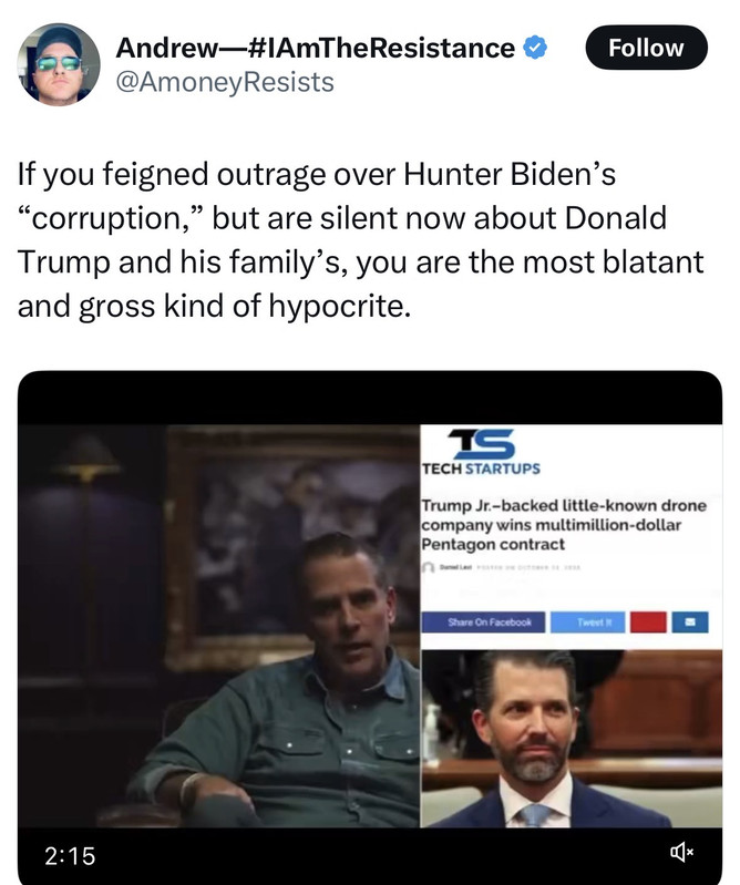 https://techstartups.com/2025/10/24/trump-jr-backed-drone-company-wins-multimillion-dollar-pentagon-contract/Taking drone manufacturing away from China sounds like a good deal. Hunter pointed out that the company has never manufactured a drone. That may be true but the article indicates they're involved with components, not drone manufacturing.
