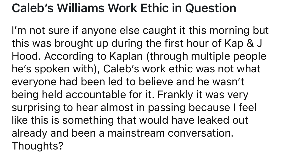 There have been hints. Reports that the veterans were not happy with Caleb being annointed and not really held accountable. That was discussed midseason. Herbstreit threw it out there as well, hard to believe that would have been completely random. Eberflus wasn’t fired for creating a culture of no accountability afterall.