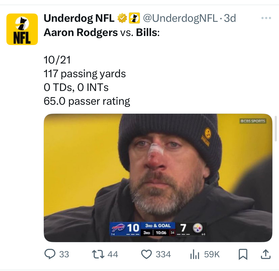This is why I didn’t much fear 42 year old Aaron Rodgers.