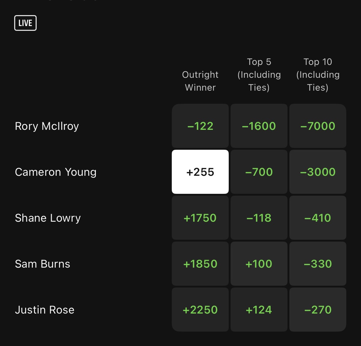 Cam Young is on fire. Rory spinning his wheels, barely making pars. Wanna be cop killer Scottie Scheffler with a huge round today.