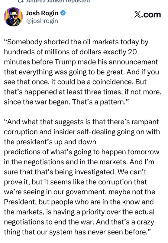 Do you know how many dollars worth of oil get traded nearly every hour of every day and how easy it would be to try and draw a pattern from timing? Especially when fundamentals suggest oil may be overpriced currently. Maybe they are insider trading, but this is a loooong ways from a smoking gun.