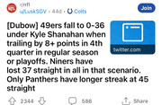 Kyle Shanahan apparently 0-38 as a coach in the 4th quarter when his team is down 7 or more points. Hmmm.